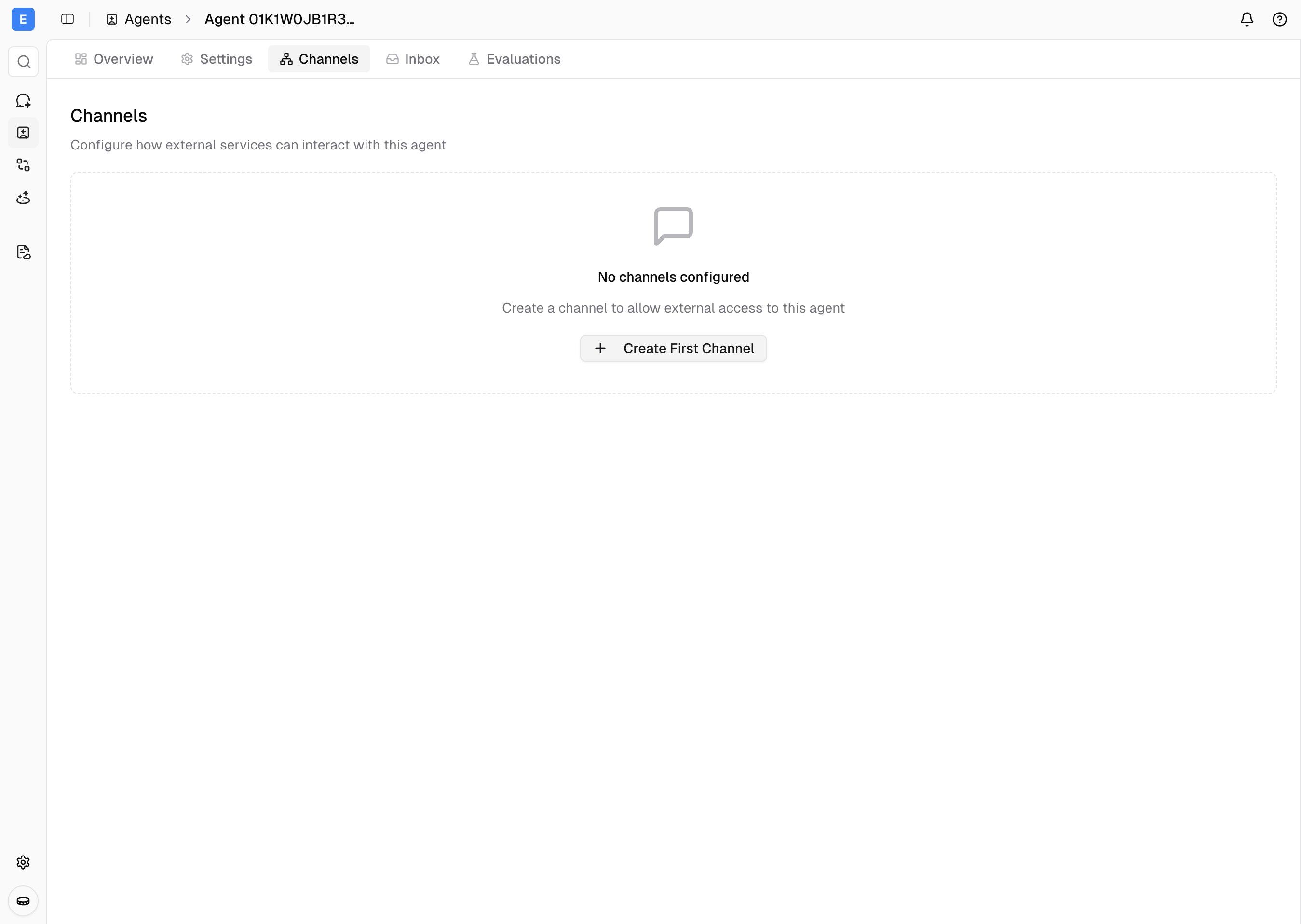 Create channels for Slack, webhooks, or website deployment to make your agent accessible.